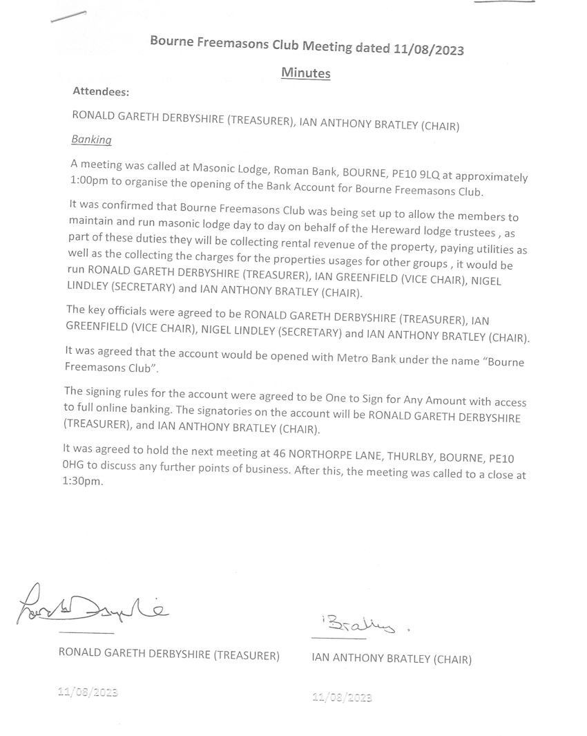 Minutes of the Meeting at the Masonic Centre 19/08/24 |